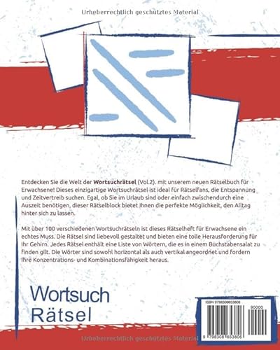 Inkl. MwSt. zzgl. VersandkostenZuletzt aktualisiert am: 29. April 2026 3:42Wortsuchrätsel für Erwachsene: Wortsuche für Ruhe, Entspannung, Zeitvertreib und Mehr.: Ideal für Freizeit, Urlaub und Zwischendurch. Worträtsel mit Lösungen | Gehirnjogging für Erwachsene Vol. 2
